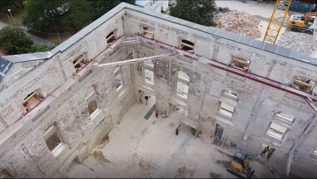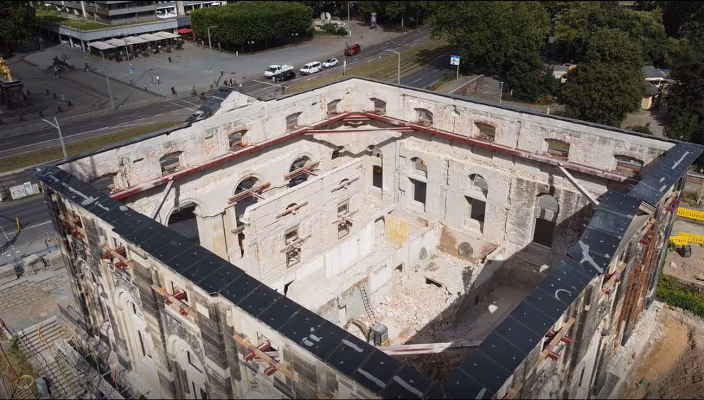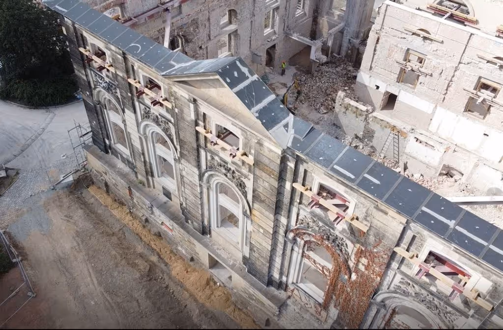 Die Abbrucharbeiten am Blockhaus sind beendet. Jetzt steht nur noch die denkmalgeschützte Barock-Fassade.